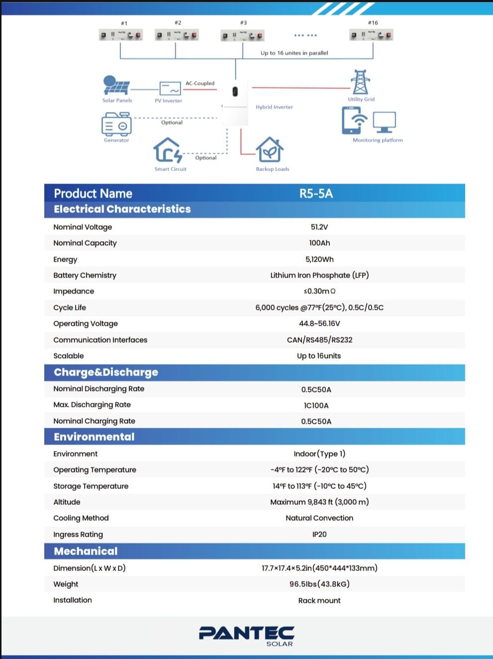 LİFEPO4 AKÜ 51,2 VOLT 100 AH LİTYUM BATARYA PANTEC MARKA 5 KW - 4 YIL ÜRETİCİ GARANTİLİ