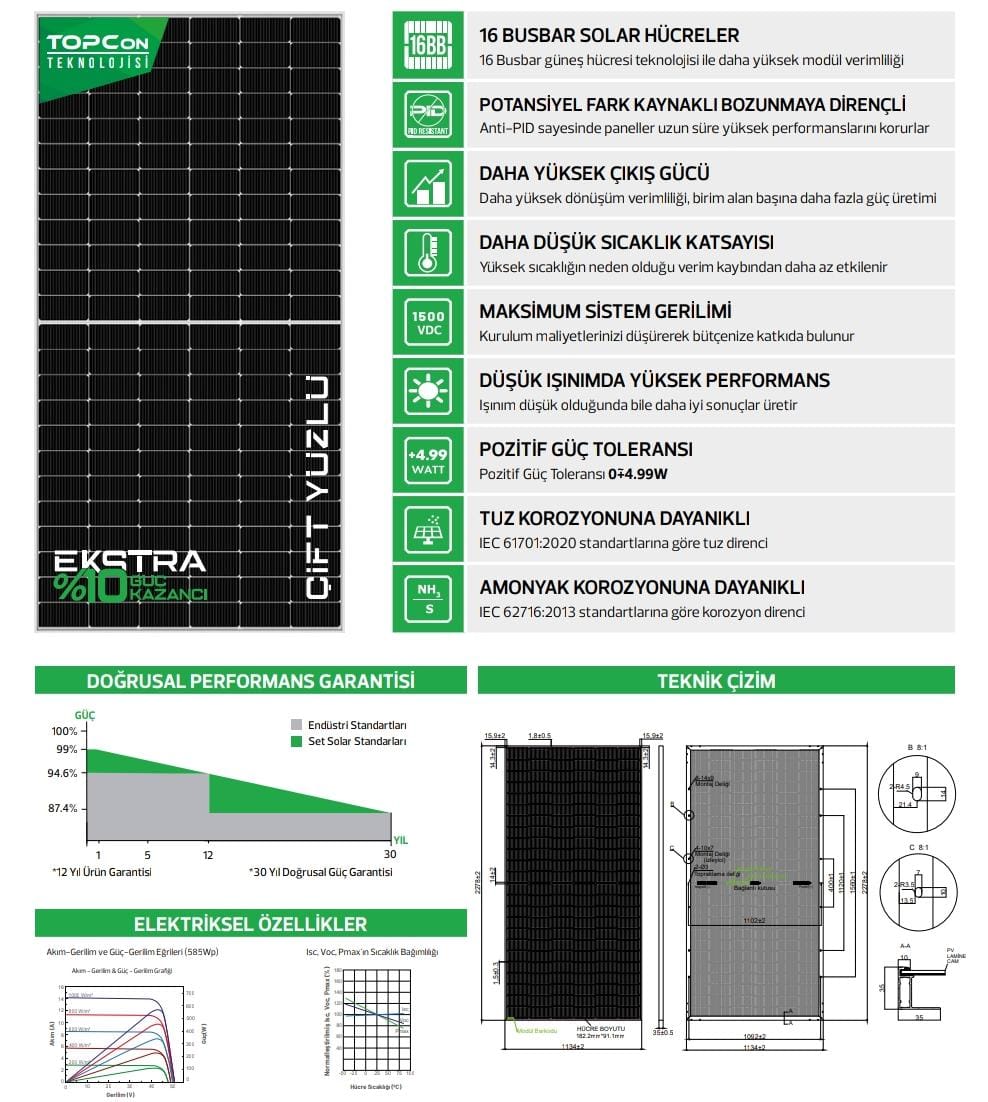 SANEVO Solar 600 W MONOKRISTAL HAL CUT ÇİFT YÜZLÜ GÜNEŞ PANELİ TOPCON 10 Yıl Üretici Garantisi